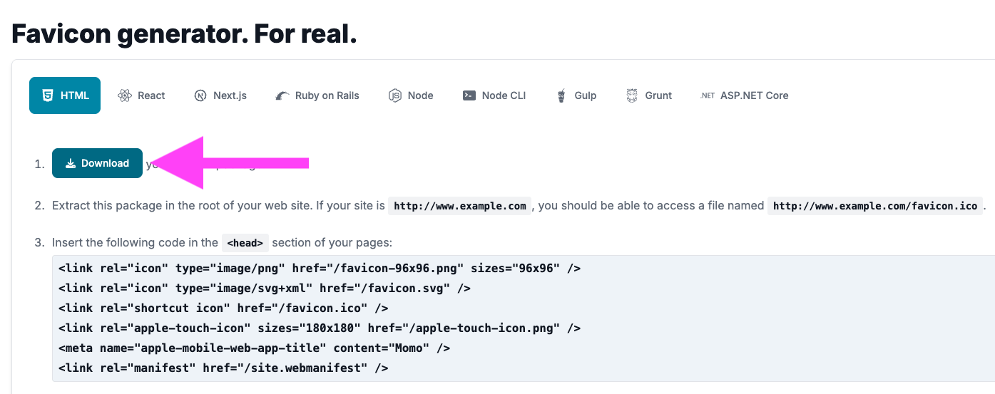 Le but de cet exercice est de générer des favicônes avec le site https://realfavicongenerator.net/ et de les intégrer correctement à un site Web.