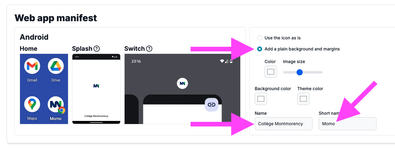 - Configurez adéquatement la favicon avec les informations : Collège Montmorency (Momo). Voici les étapes :