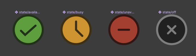 Nous allons créer les icônes pour les 4 états suivants : disponible, indisponible, occupé et absent.