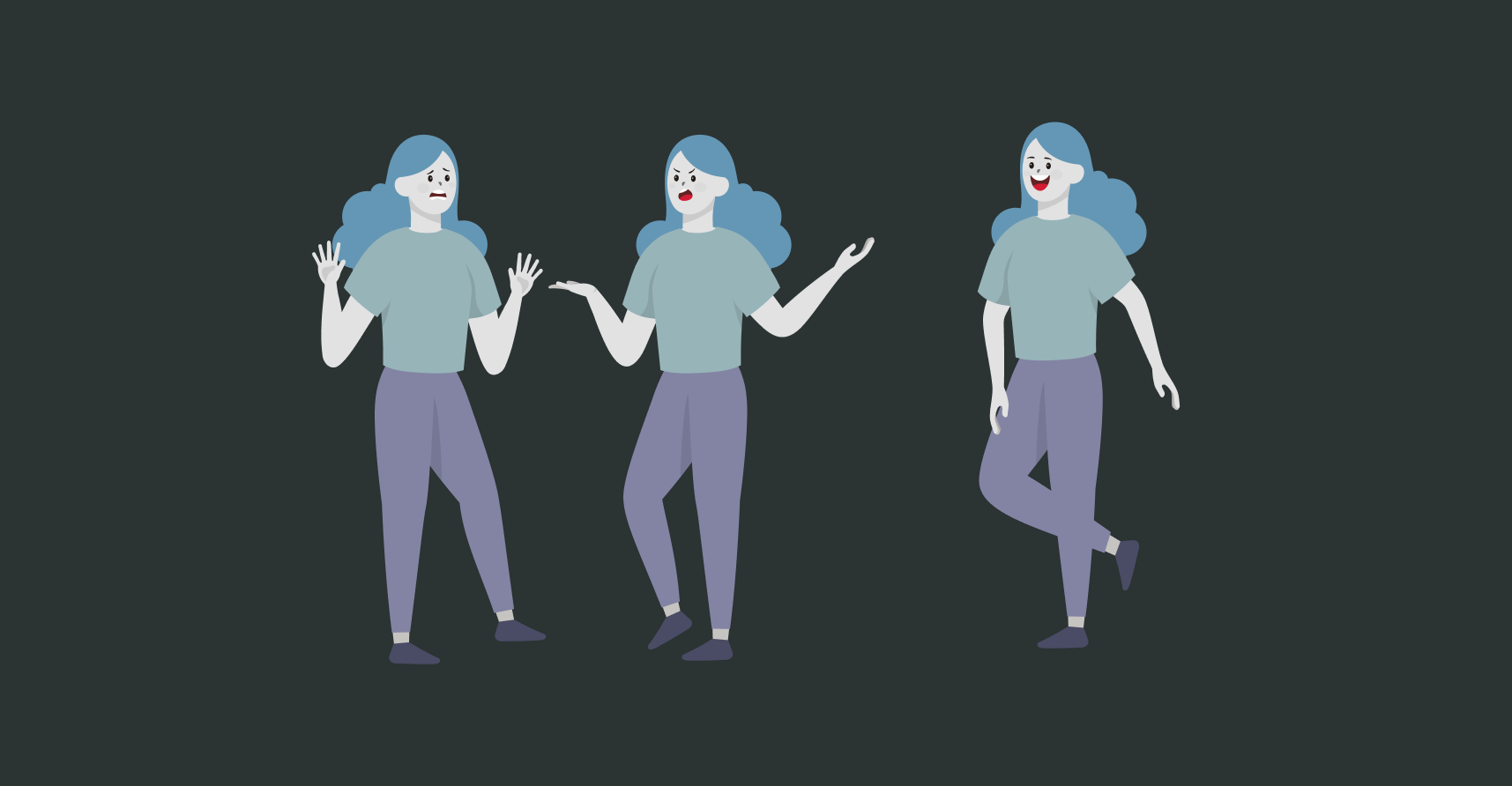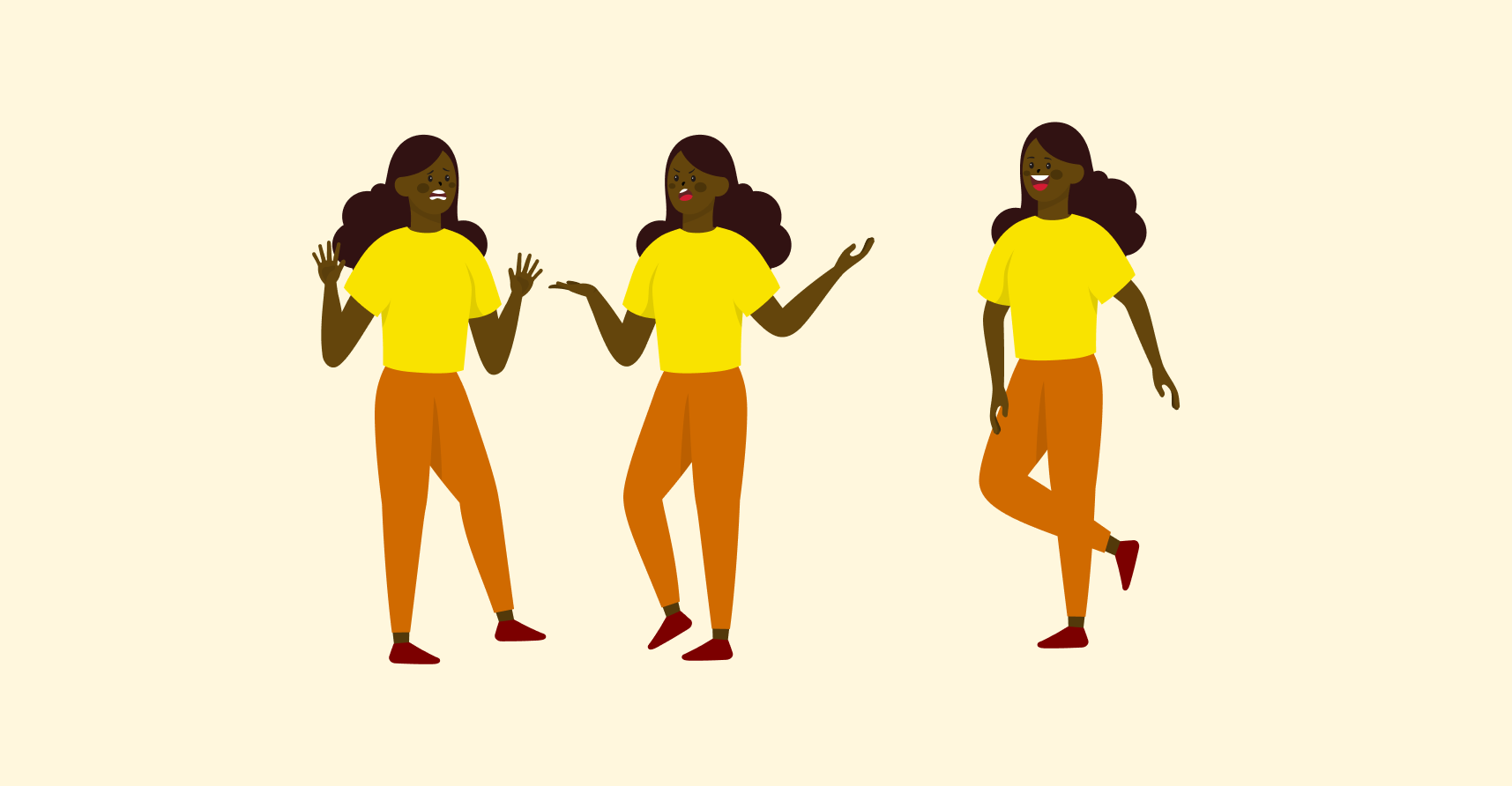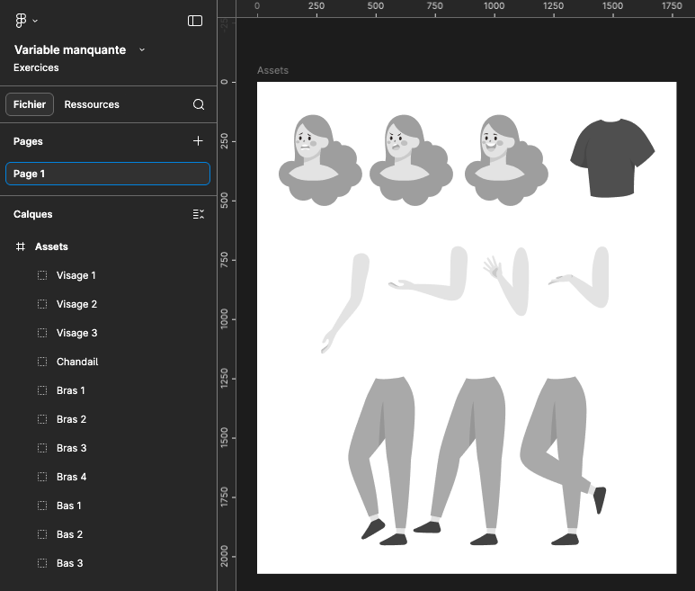 Il sera question de créer 3 personnages. Tous les assets fournis dans le document doivent apparaître au moins une fois dans le montage. Au moins un personnage doit être inversé. Voici un exemple (sans couleur), du type de montage à effectuer :