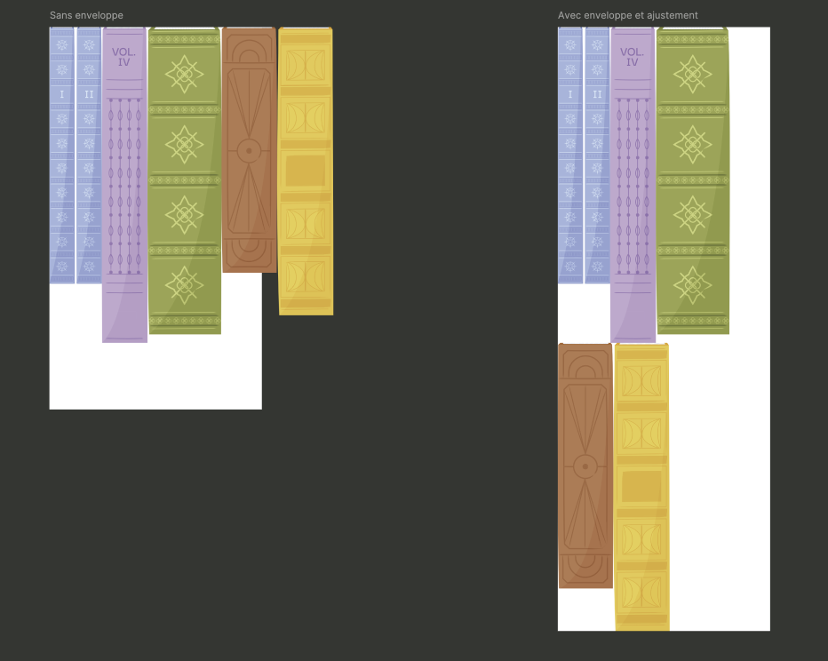 - On applique d'abord la mise en page horizontale sur un frame et on y ajoute les éléments désirés (les livres).