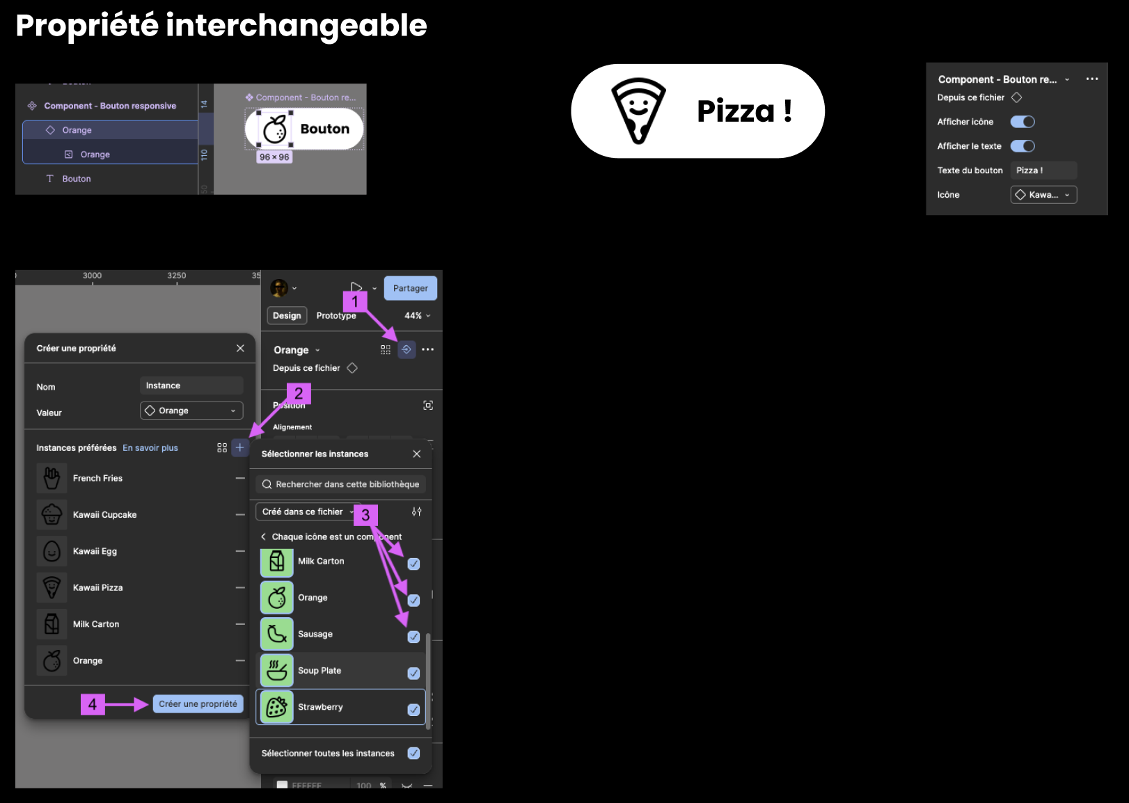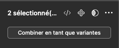 Pour créer des variantes, sélectionner plusieurs composants du même type, puis dans la colonne de droite, cliquer sur le bouton « Combiner en tant que variantes » :
