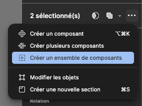 Si aucune composante n'est encore créée, sélectionner les éléments, puis dans la colonne de droite, cliquez sur les trois petits points et sélectionnez « Créer un ensemble de composants » :