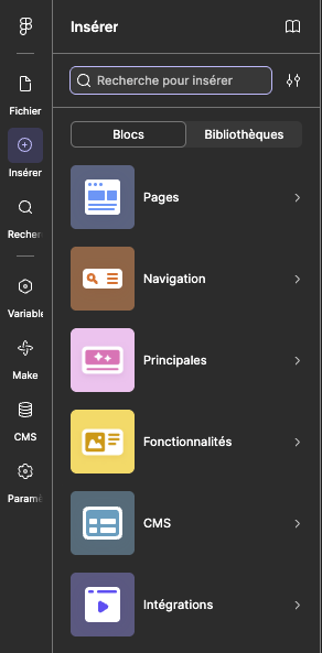 - Ajouter un bloc via le panneau de gauche ou le bouton