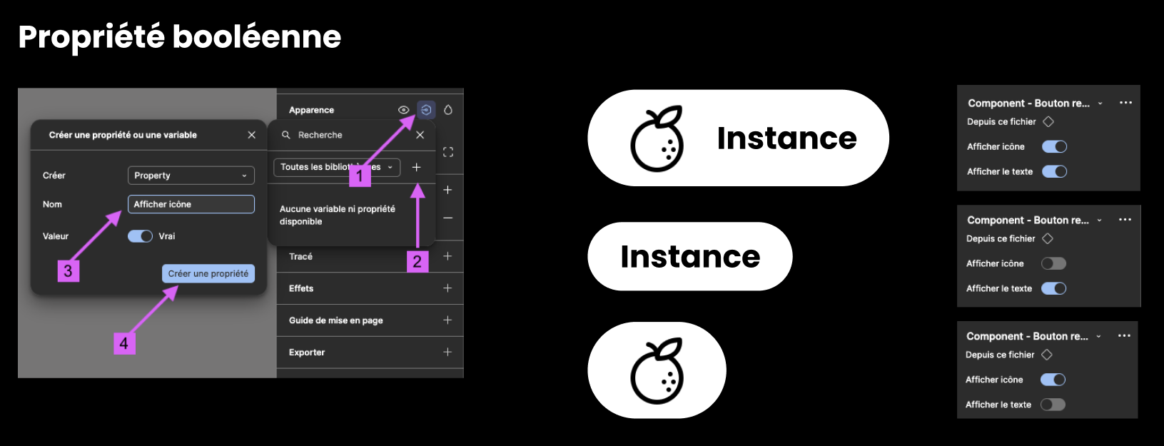 Les propriétés permettent de rendre certains aspects d'un composant modifiables par l'instance sans briser le lien au composant de base.