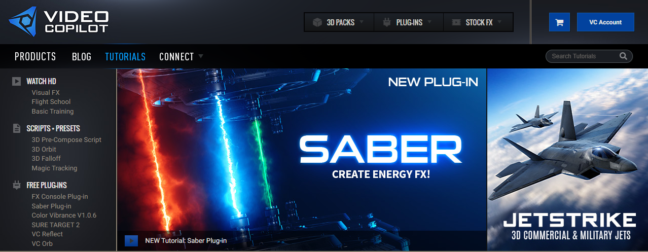 Video Copilot est un site web qui représente une ressource très reconnue et très estimée par la communauté dans le domaine de l'animation, du motion design et des effets spéciaux (VFX). Le site est surtout reconnu pour ses tutoriels animés par Andrew Kramer : un pionner dans le domaine. La plateforme offre également des extensions pour After Effects comme des effets premiums (Optical flare, Element 3D, etc.), mais aussi gratuits (Saber, FX console, Sure Target, Color Vibrance, etc.). Bien qu'on se concentre sur le motion design dans le cadre du cours, plusieurs tuto sont utiles pour apprendre les bases d'After Effects, mais aussi plusieurs sont pertinents pour ajouter ou améliorer vos vidéos.