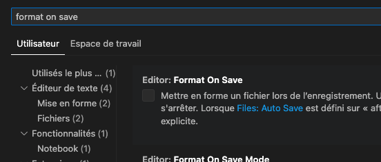 - Recherchez « Format On Save »