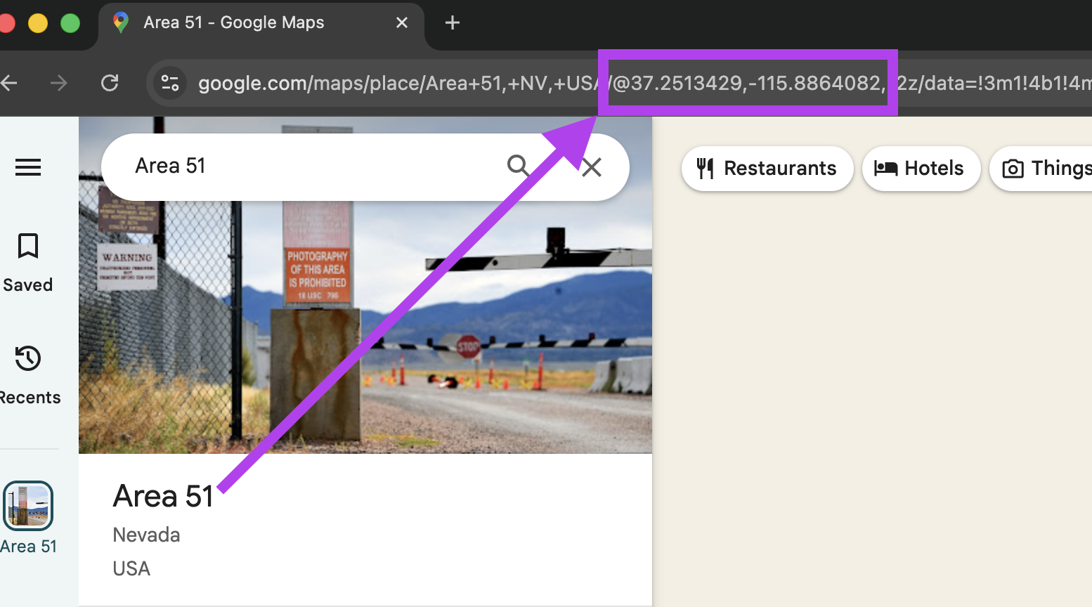 Pour trouver des coordonnées, le plus simple est de passer par une URL Google Maps.