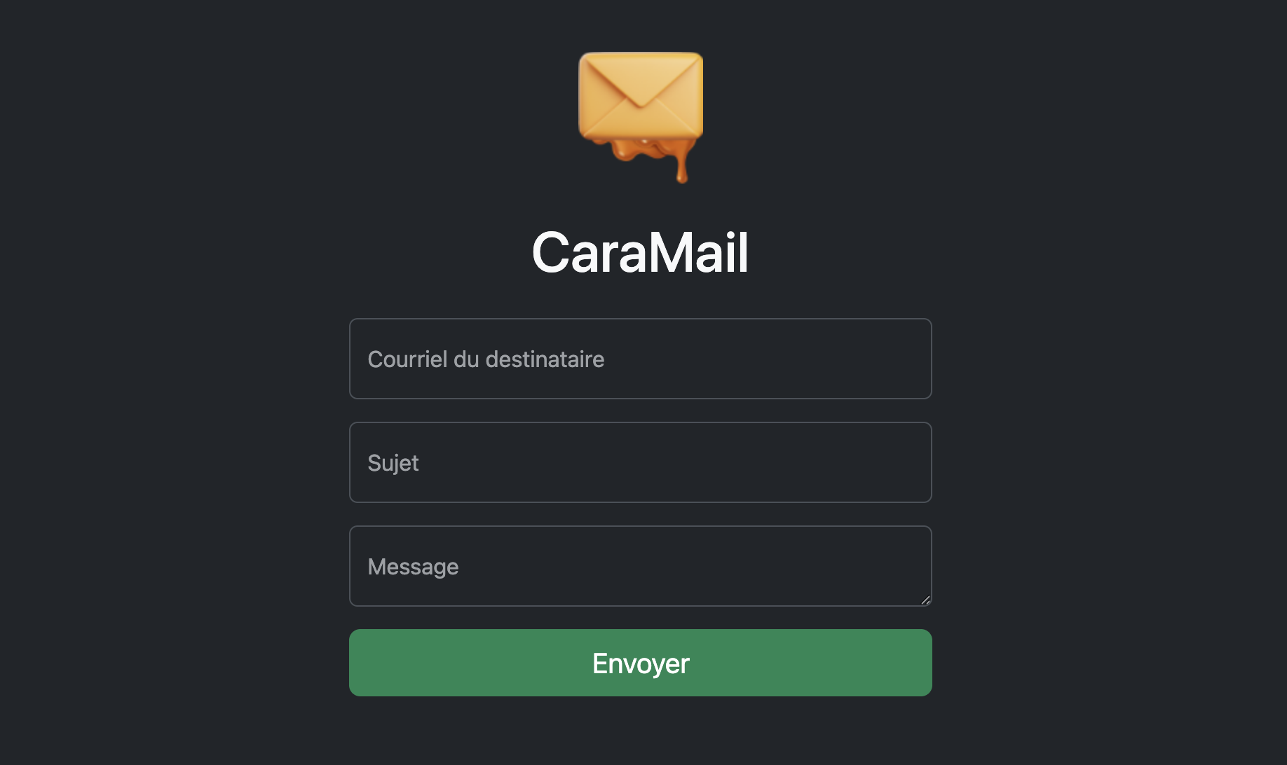 - Ajouter un titre de niveau 1 avec le texte « CaraMail »