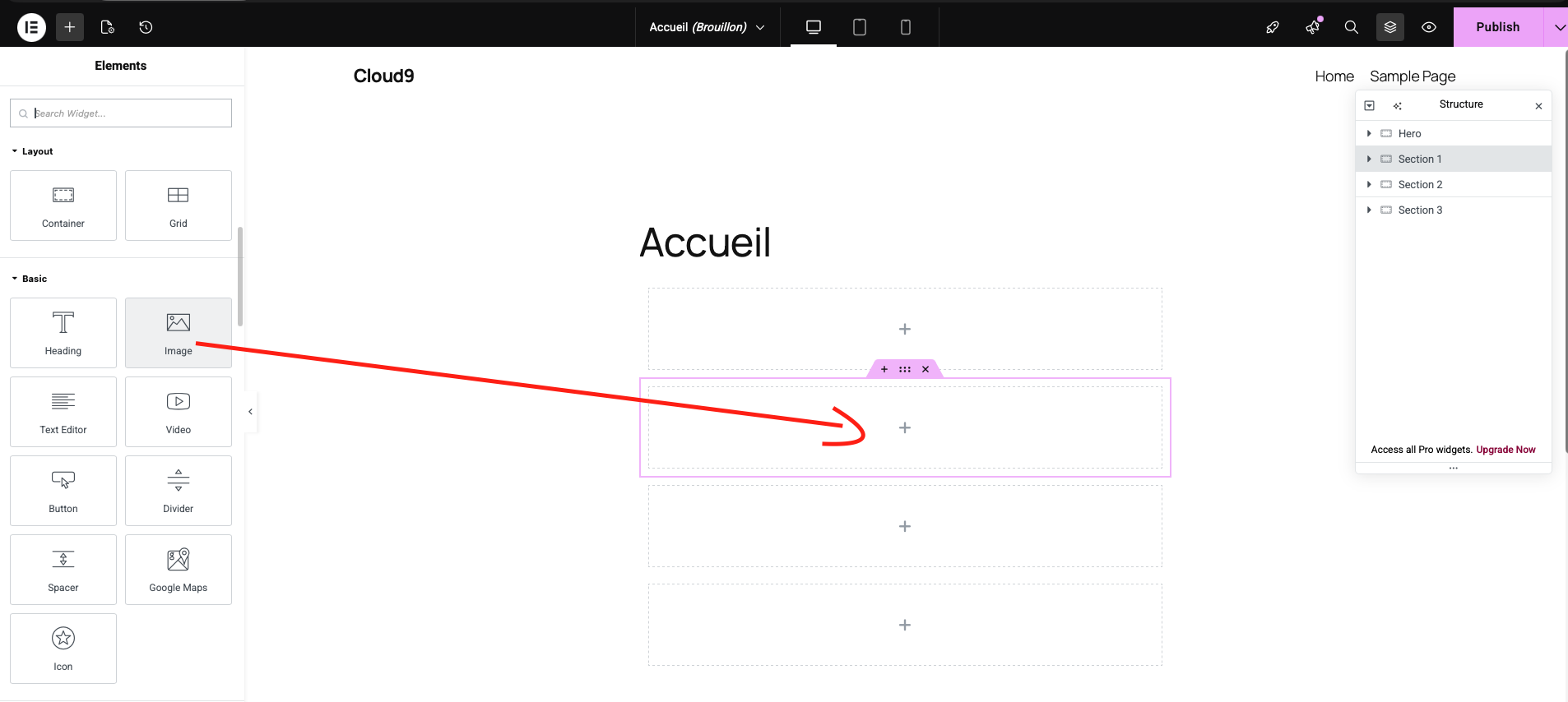 Dans Elementor on peut glisser-déposer des widgets :