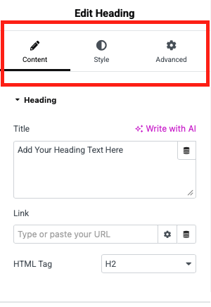 - Contenu – modifier le texte, lien, icône, etc.