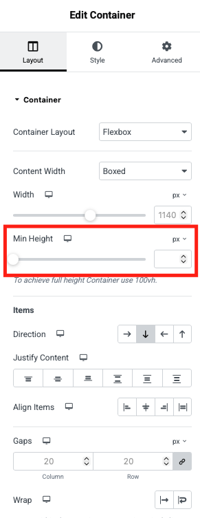 On peut aussi ajuster la hauteur minimale d’un conteneur.