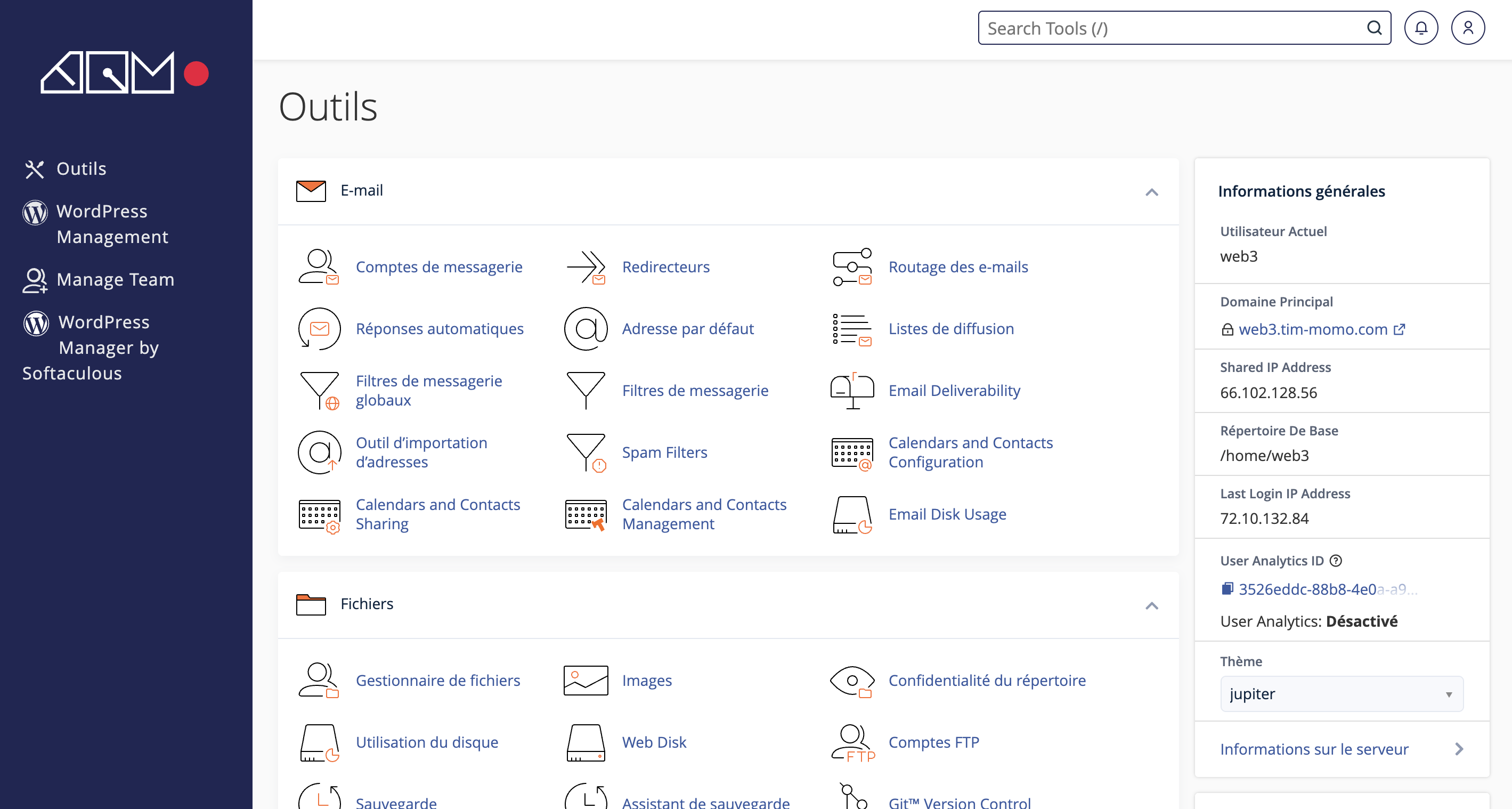 - Dans le tableau de bord, cliquer sur « Gestionnaire de fichiers »