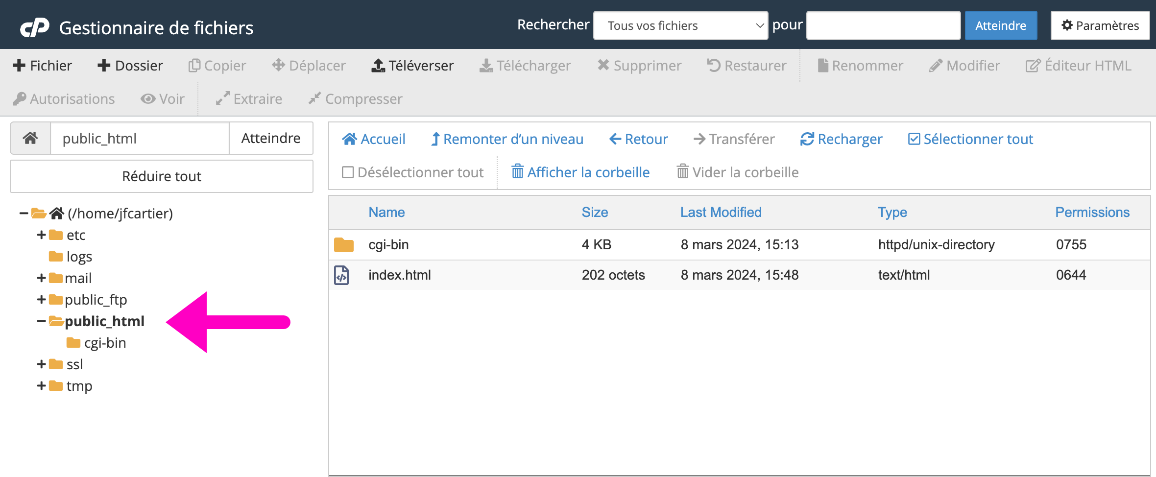 📁 public_html : C’est la racine Web : tout ce que vous y ajouterez sera visible sur internet