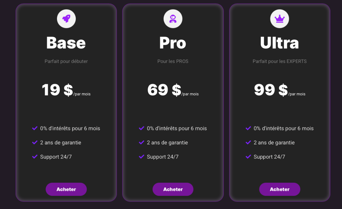 - À droite de l'en-tête, ajouter un bouton, account et un Panier